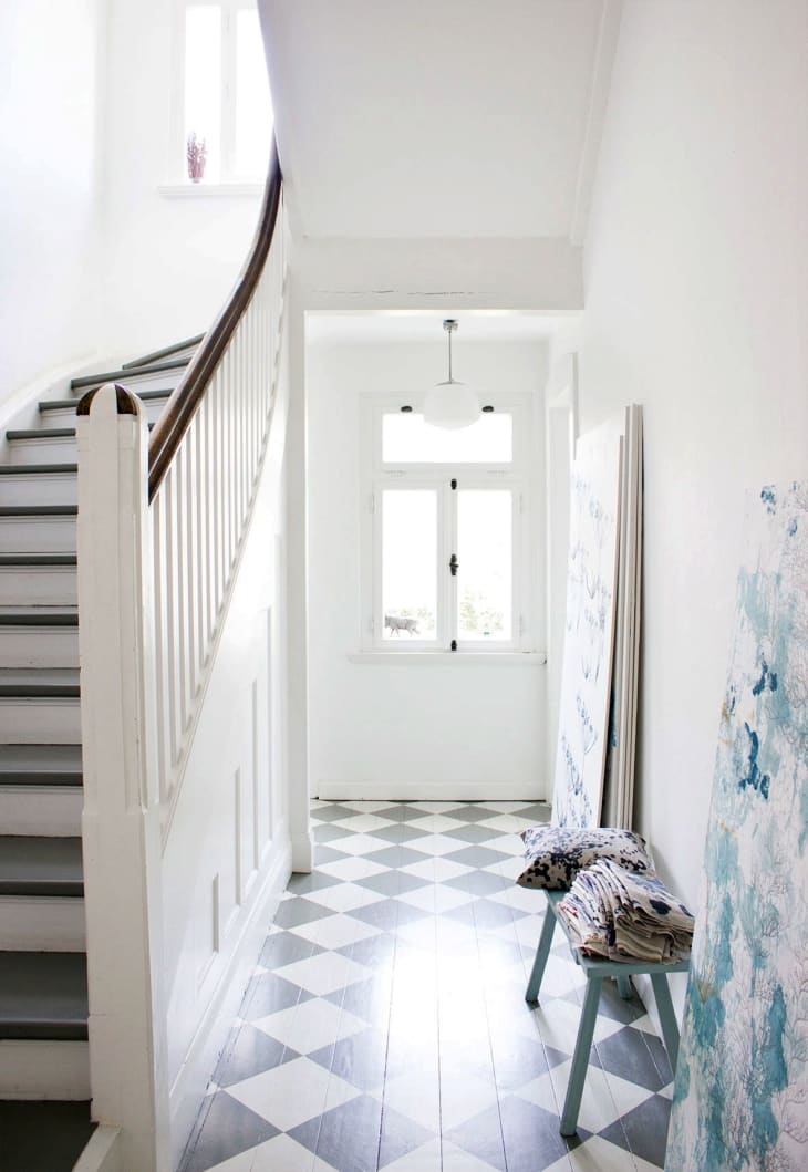 PAINTED HARDWOOD: Birgit Morgenstern’s hardwood entryway (above) was painted in black and white checks, as seen on Oh What a Room. ESTIMATED COST: $1.00 – 3.00 per square foot.