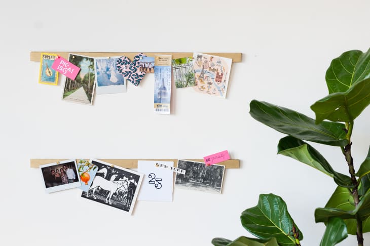 I love hanging on to old photos, heartfelt cards, and fun prints and postcards from my various travels, but it’s hard to figure out how to display them without buying a dozen different frames, or haphazardly attaching them to my wall with washi tape. But that doesn’t have to be the case — thanks to magnets. With a handful of supplies and 30-minutes or less of your time, you can dress your walls up and display all your favorite prints with this easy photo display tutorial. Similar to a magnetic knife rack you might see in a kitchen, this project combines the forces of magnets with trendy metallics in three steps. Yes, I said three!
