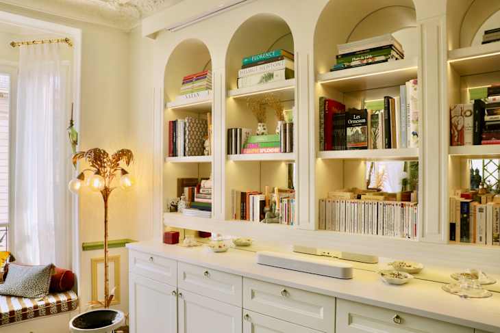 “I loved creating this trellis,” Tatiana told Apartment Therapy in the living room Before & After post about her project. There actually used to be a bona fide wall and doors behind the sofa, but Tatiana and her husband had it demoed out during an entire apartment reno in which they created a home library reading nook.