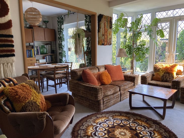 Rachel and her partner, Jonathan, live in a warm and well-thrifted 900-square-foot bungalow in the United Kingdom with their three children. “We weren’t necessarily looking for a new house,” Rachel says about where she’s lived for the past 18 months with her family. “But when we came across this two-bedroom 1950s-era bungalow with a big garden, we took on the project of turning it into a home.”