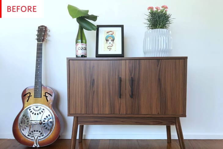 I really wanted to hide the unsightly nature of the kitty litter tray and had seen a handful of hack ideas on how to convert furniture to do just that. It all happened when I found the right sideboard for our design taste at the right price (just $45 from Kmart![Australia]) to experiment on this DIY project. I know how many people are in the same position — they love cats but want to create a beautiful home space… this is a perfect solution.