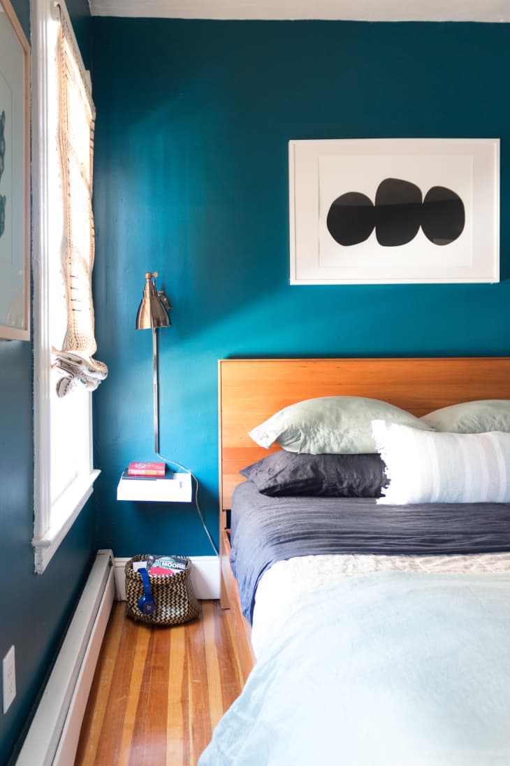 From there, layering is key, especially if you don’t know whether your guests sleep hot or cold. “Every guest room needs a couple of cozy bedding options like a quilt and a duvet,” suggests Ashley Moore, founder of Texas-based Moore House Interiors. “You never know which your guests might prefer. Plus, it adds an elevated touch to the room.” Keep an extra throw or two at the foot of the bed just in case guests get cold, and if you can add a fan nearby, that may be helpful too.