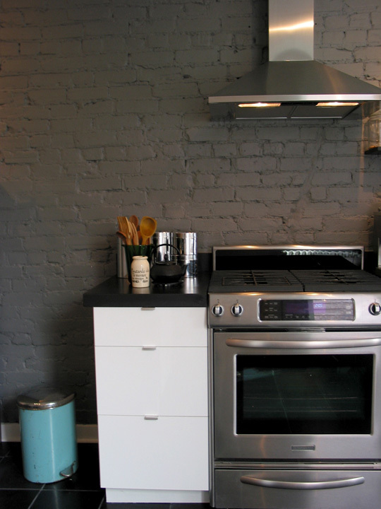 Countertop and floors: Honed black slate (NOTE: never buy a honed slate countertop. It chips and stains far too easily and requires regular oiling)