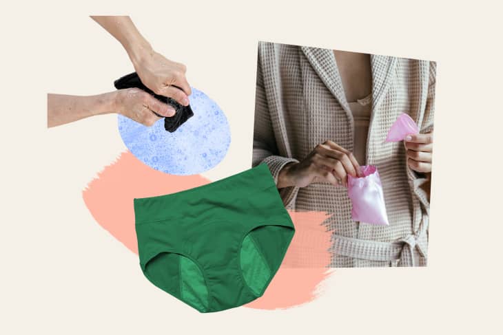 The options are endless when it comes to various period products you can reuse now, which will help the environment and save you money in the long run. Reusable pads can follow the same cleaning process as period underwear and can be hung dry or laid flat (they’ll also dry more quickly than period panties). Some recommend a 30-minute soak in cold water first before hand washing and using natural soap that won’t irritate your skin. You also might have to reshape the pad if you’ve used a washing machine before letting it sit to dry.