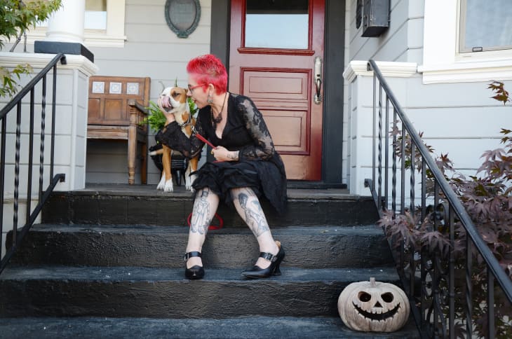 Instead of machine-drying, you should hang your dark-colored wardrobe to dry. “Avoid using the dryer if possible since tumbling in heat can cause clothing to fade faster,” says Goodman. “The dryer may also set in any missed stains from your spooky adventures.”