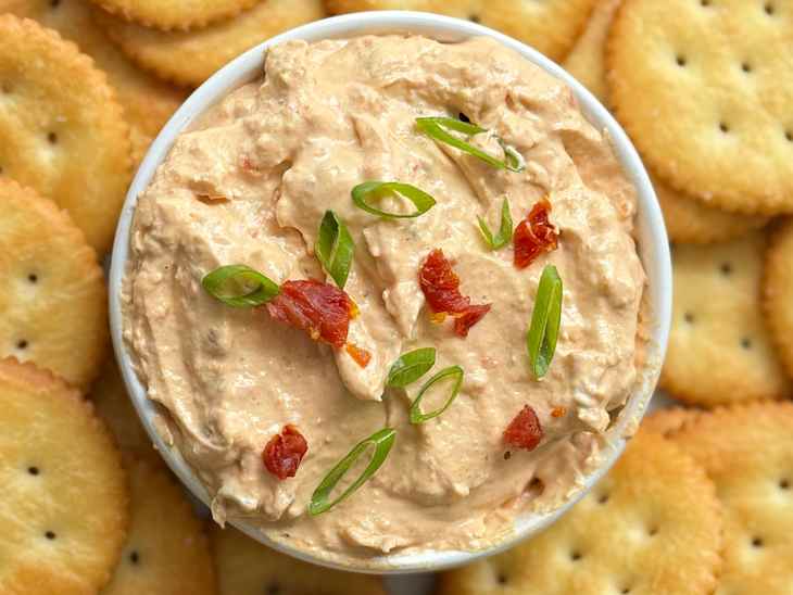 Ina Garten’s sun-dried tomato dip takes just a few minutes to make with the help of a food processor. Blend oil-packed sun-dried tomatoes, softened cream cheese, sour cream, mayonnaise, hot sauce, kosher salt, and black pepper together in a food processor until smooth. Add green onions and pulse a few times to combine, then transfer to a serving dish. Serve with crackers or vegetables for dipping.
