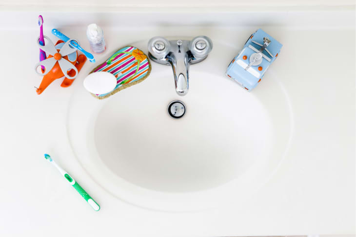 Between the gobs of toothpaste, magnetic fishing poles, and the mountain of tiny laundry, if you share a bathroom with children, you know it’s not always the cleanest room in the house.