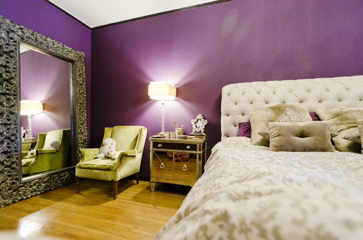 Favorite Element: That’s really hard to pick, I love so many things. I was especially drawn to the original 1920s elements being intact: hardwood floors, bathroom tiles, kitchen tiles, woodwork, moldings etc. My absolute favorite elements are the original floor to ceiling French windows and doors. I also love the hand-painted crown moldings in the living room! The solid wood doors with intricate detail and original hardware really moved me as well! Not to mention the grand entrance with whimsical courtyard, fountain, and huge wrought iron gates. Swoon.