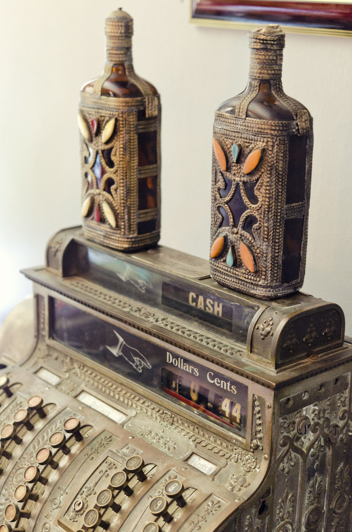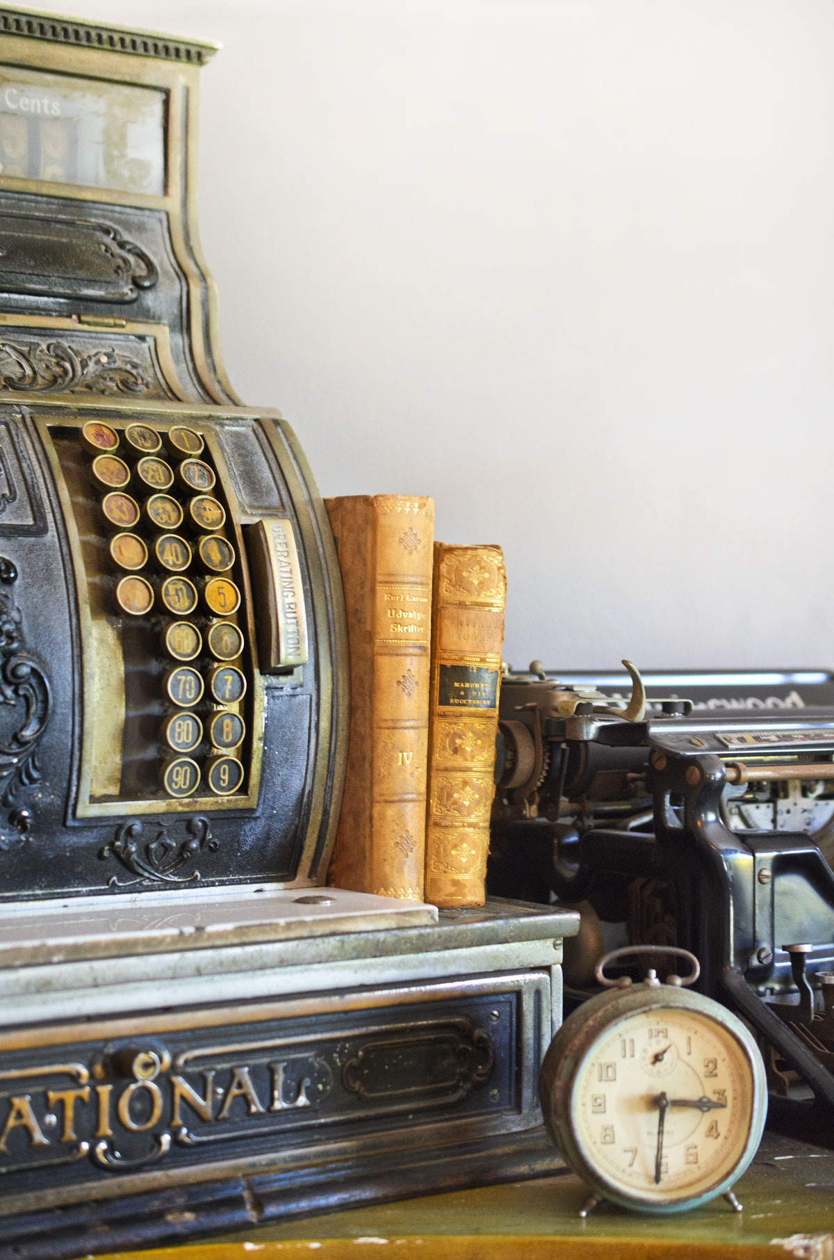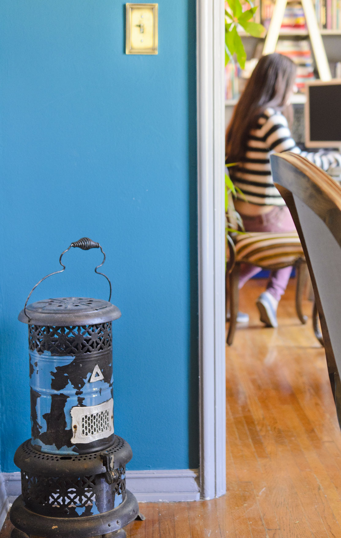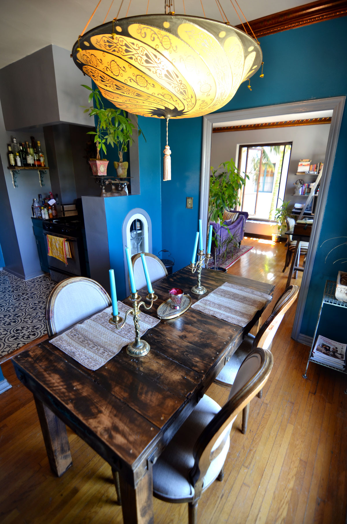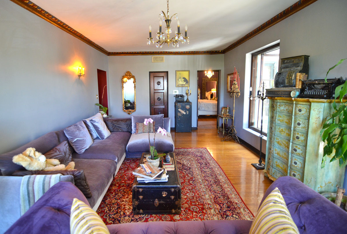 Proudest DIY: Honestly there was a lot of DIY, but I have to say I am most proud of the antique gems I found on Craigslist for really cheap. Sometimes people have no idea what they are giving away. My 1920s or 30s steamer trunks were found on Craigslist; the owner said he got them at an antique store in Boston and a couple traveled all over Europe with them in the 1940s. They have amazing stickers all over them. Priceless. I use one as my coffee table. I also always wanted a National cash register partly for decorative effect, to remind me that one day it will be in my forthcoming restaurant/lounge. I basically stole these items at their prices.