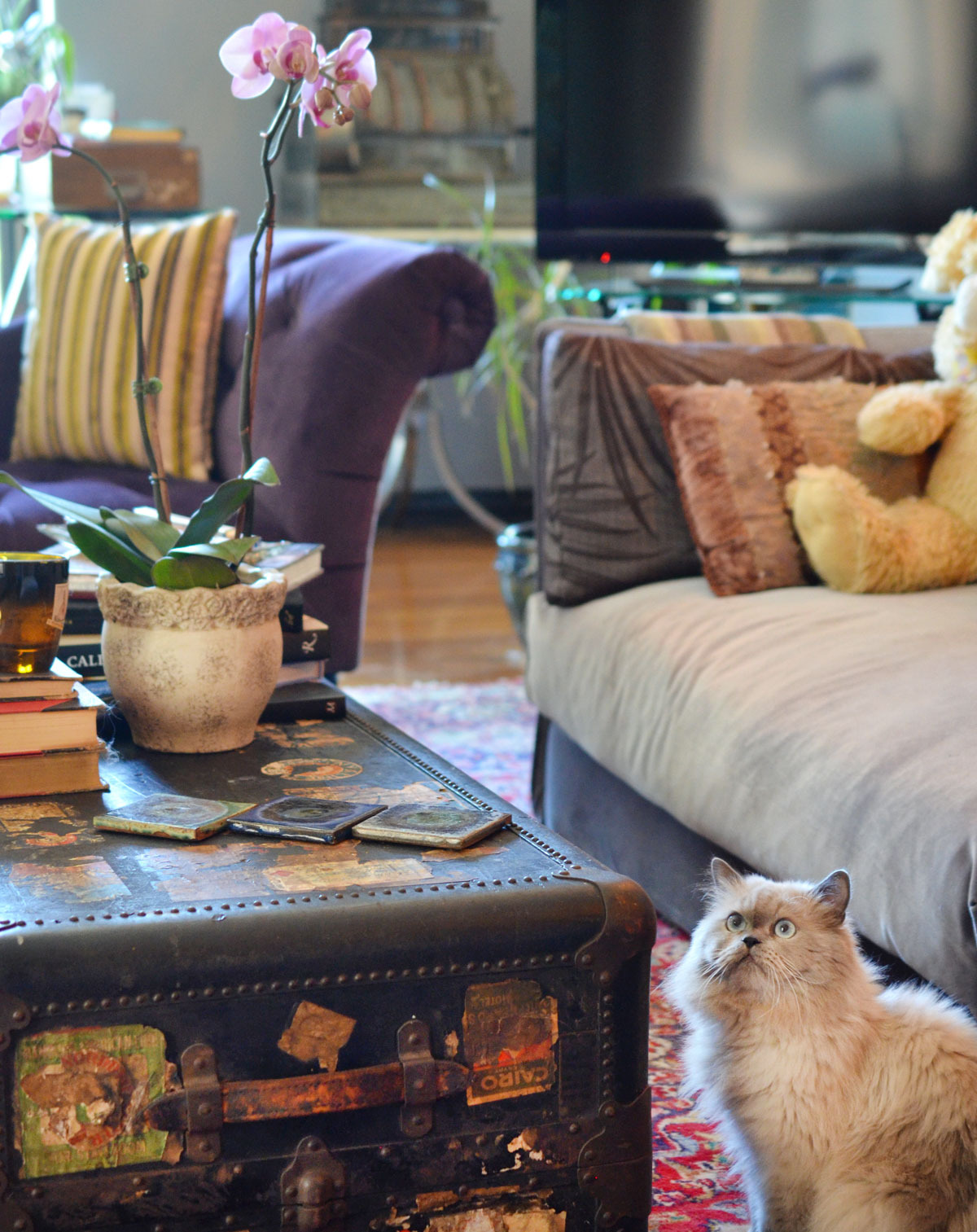 - Steamer trunks/coffee table: antique via Craigslist