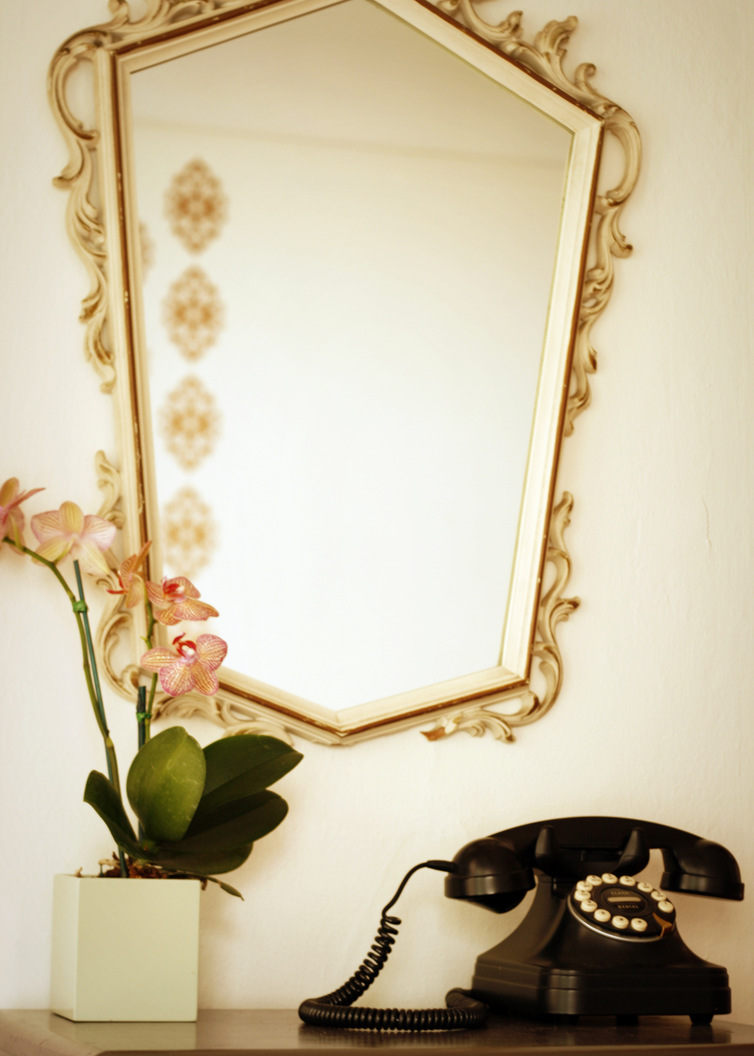 Bedding – Garnet Hill; Decals – Single Stone Studios (Etsy); “Welcome” Ice Hotel Photograph – Still Memory (Etsy); Apple Print – DeYoung Museum; “Yellow” photograph – Erin Tyner (Etsy); Paper boxes – Paper Source; “Floofy” little bird – Little Bit Funky (Etsy); Telephone – Pottery Barn