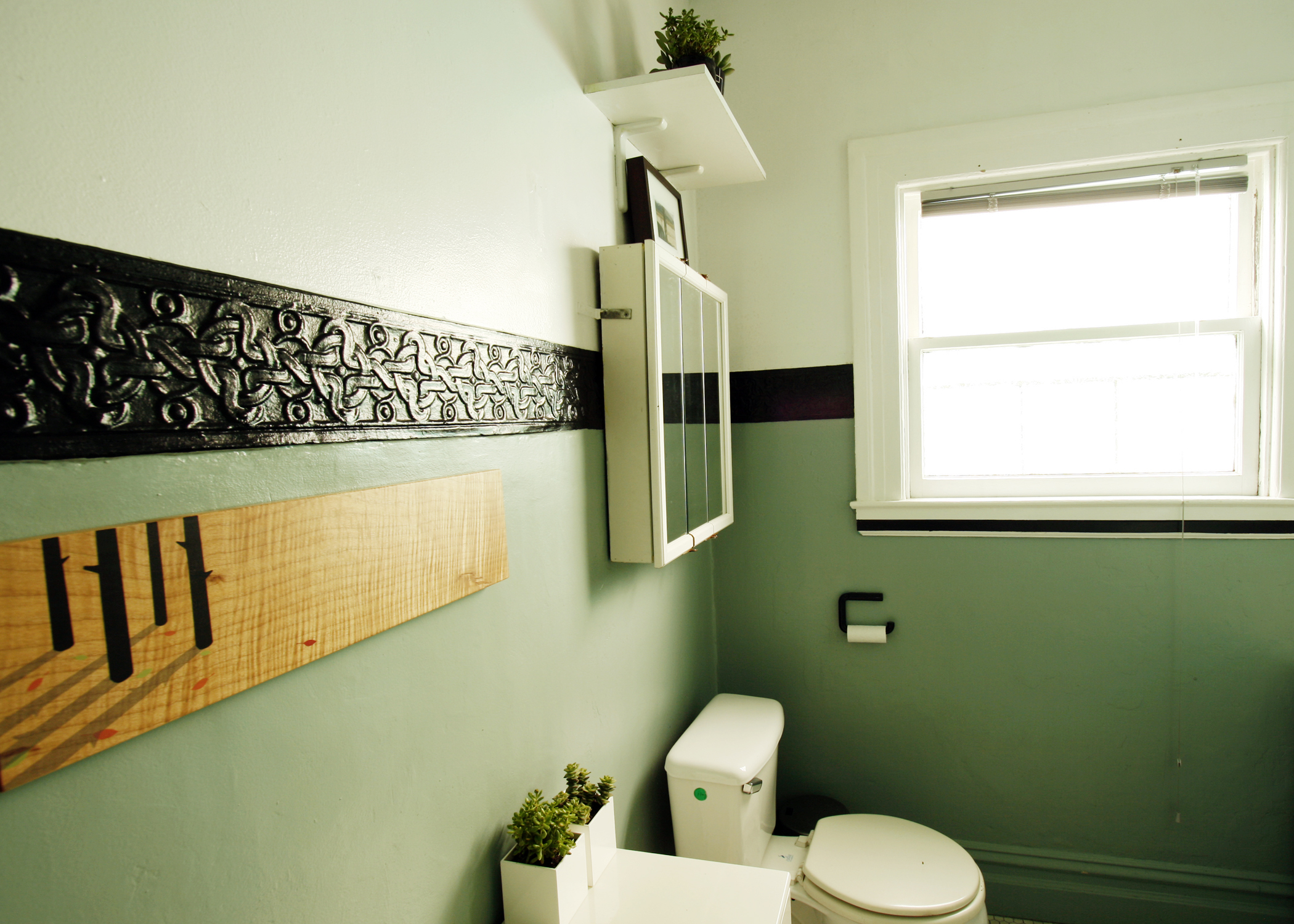 Trees Painting – Tiny Sparks Design; Succulent containers – Wetter Indochine made for Rose and Radish; Wall color – Benjamin Moore 2049-60 forget me not