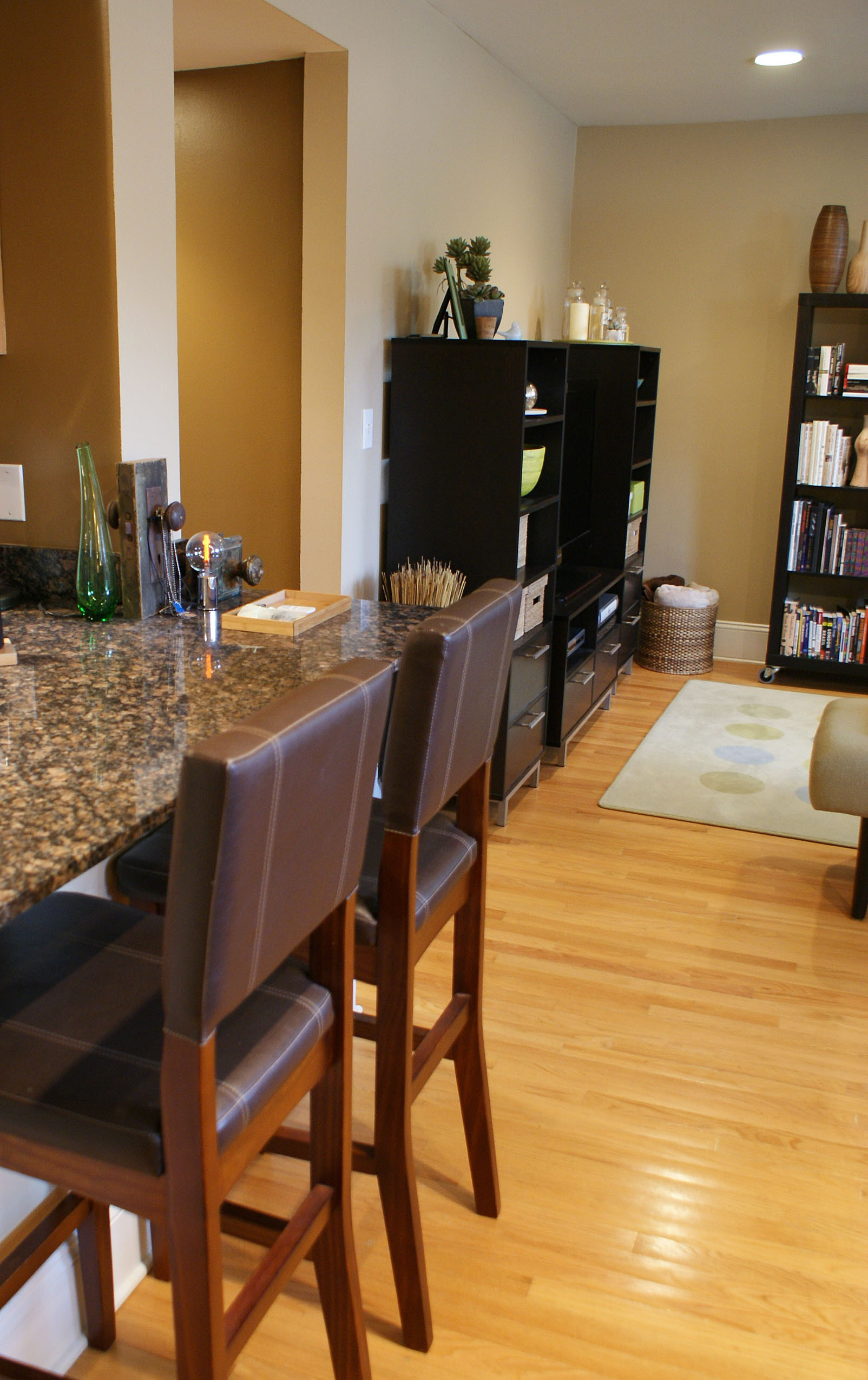 Garden apartments in Chicago can often be dark, cavernous spaces. They are — after all — a few steps below street level. By keeping his wall colors and furniture in light earth tones, Jim has managed to make this garden apartment seem bright and open.