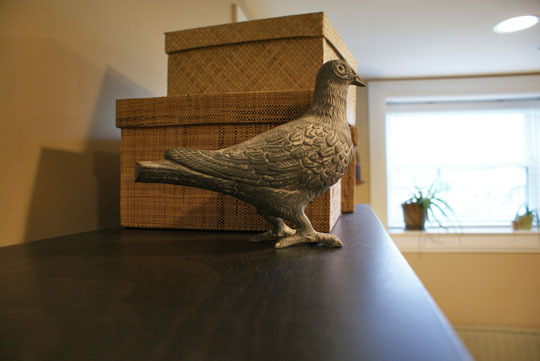 Favorite Element: I’m fascinated by animals that people consider urban pests (especially pigeons), and I have been collecting antique pigeons for a while. The last time I was in Alabama I was very happy to find a cool antique birdcage that I really love and it complements the statues well.