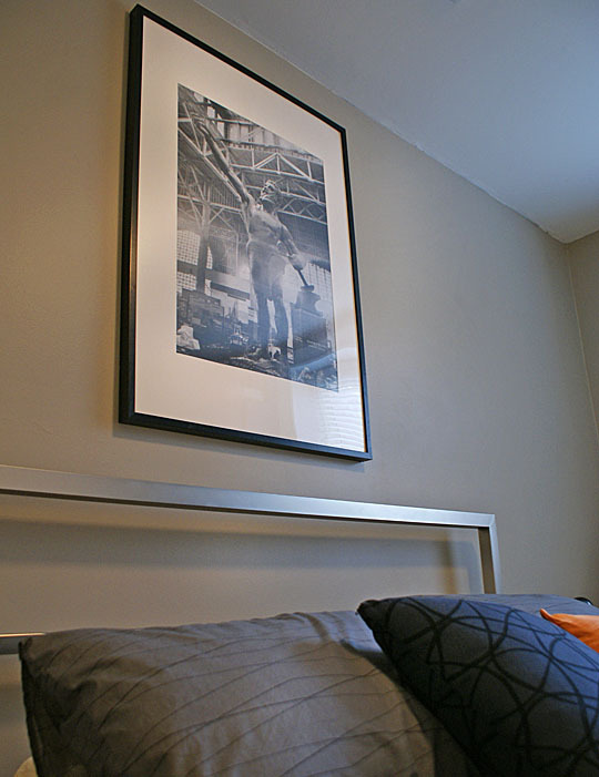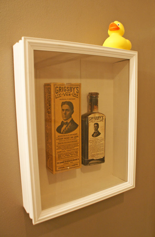 What Friends Say: I spend a lot of time looking for unique objects that I really like, so a lot of my conversations with friends involve them asking me where I found something and if there’s a history behind it. This may be because my décor includes a few odder pieces, like a bottle of Grigsby’s Liv-Ver-Lax (for habitual constipation; still full, if anyone wants a taste) from the early 20th century and a Victorian stereoscope viewer. People often ask what the significance of the large photo over the bed is: This photo is a picture of the statue of Vulcan taken at the 1904 World’s Fair in St. Louis representing my hometown of Birmingham, Alabama. I love it because it’s comes from a period I’m interested in, and it reminds me of home where Vulcan currently stands overlooking the city.