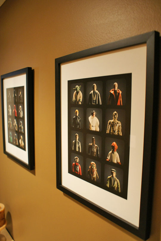 The best trick Jim used to brighten up his space was his choice of neutral paint colors. All the walls are variations of earth tones. The open living/dining room is light tan, providing a calm backdrop for the mix of wood and fabric furniture. In a few of the smaller, narrower spaces, Jim used a coordinating darker earth tone on the walls. This works particularly well in the little hallway off the kitchen, where the portraits of his collection of Star Wars figurines are displayed. Used sparingly, the deeper tones are great accents without darkening the overall space. And whereas a color may have overwhelmed this small space, Jim’s earthy palette lends a sense of openness to his home.