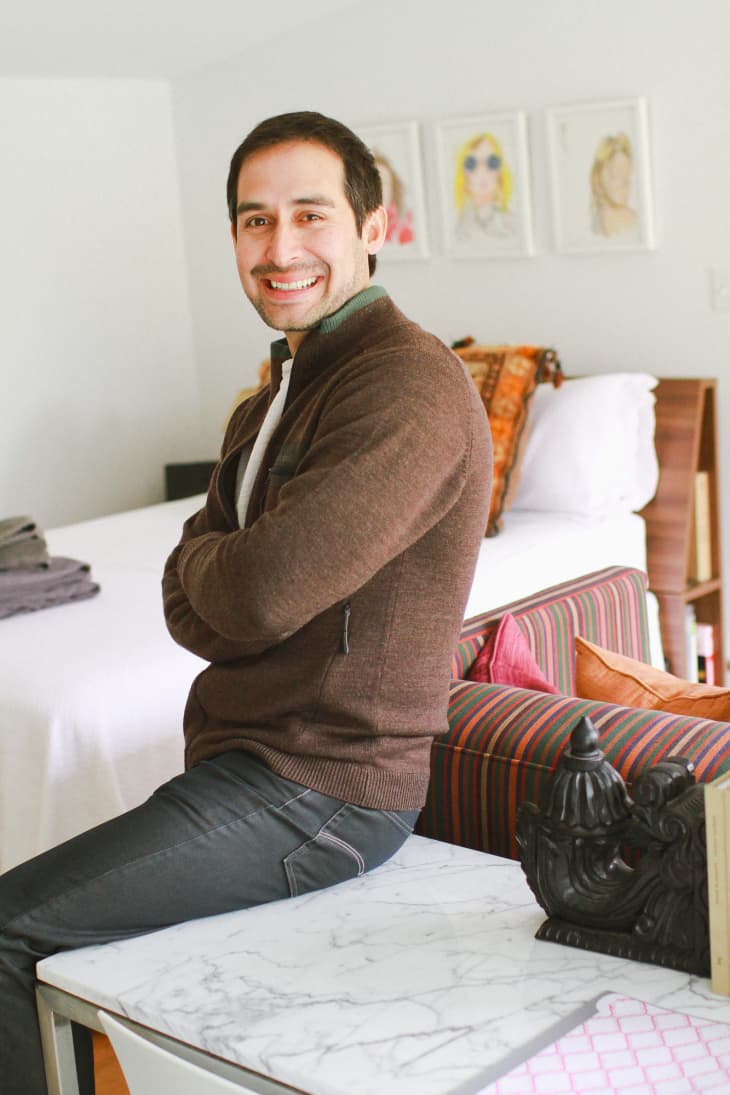 The aesthetic of this colorful, eclectic hideout has undoubtedly been influenced by Juan’s Mexican heritage and love for overseas travel. Colorful influences from his six years spent in Argentina are prominent throughout the space. A collector at heart, Juan tells me how he was influenced by countless trips to estate sales and art auctions with a great friend in Argentina. Trips that he swears sharpened his already keen eye for good finds and really defined his sense of style. As I walked through the house, so many unique pieces caught my eye. I was so happy to hear that some of my favorite pieces were actually scores from yard sales or local antique stores! The transformation of this space is nothing short of inspiring.