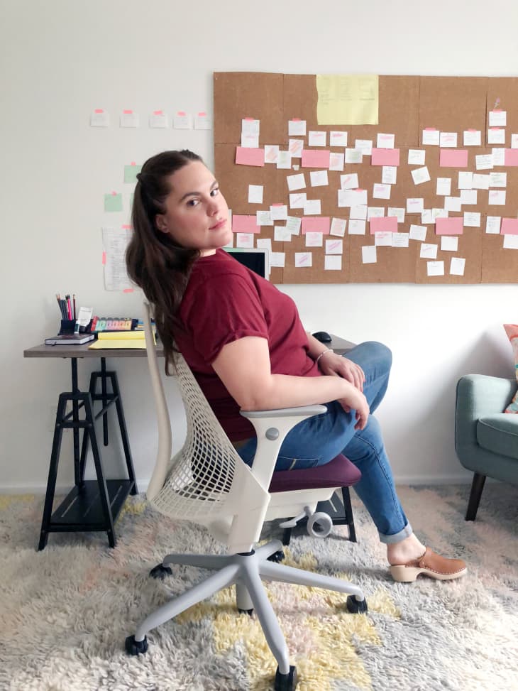 I was using dining room chairs and whatever I had in my house. I realized that I had to start investing a little bit in a few pieces that made it a space that I could really focus on. I got myself an adjustable desk. I got myself a real deal office chair which was the most money I’ve ever spent on a piece of furniture in my life, but it was completely worth it because I’m a writer. My job is to sit on my ass.