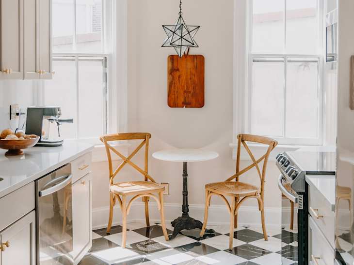 I love my glossy checkerboard flooring, but I realize it was a divisive decision, and Cho has her concerns about whether that would affect the house in a sale. “A neutral color floor that matches the cabinets would be better than the checkerboard,” says Cho.