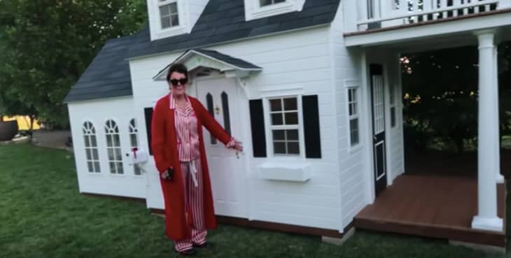 “It just made me emotional,” Kris says. “Do you want to see my surprise?” She leads Kylie to the sliding doors facing the backyard, through which you can see a mini Colonial house.