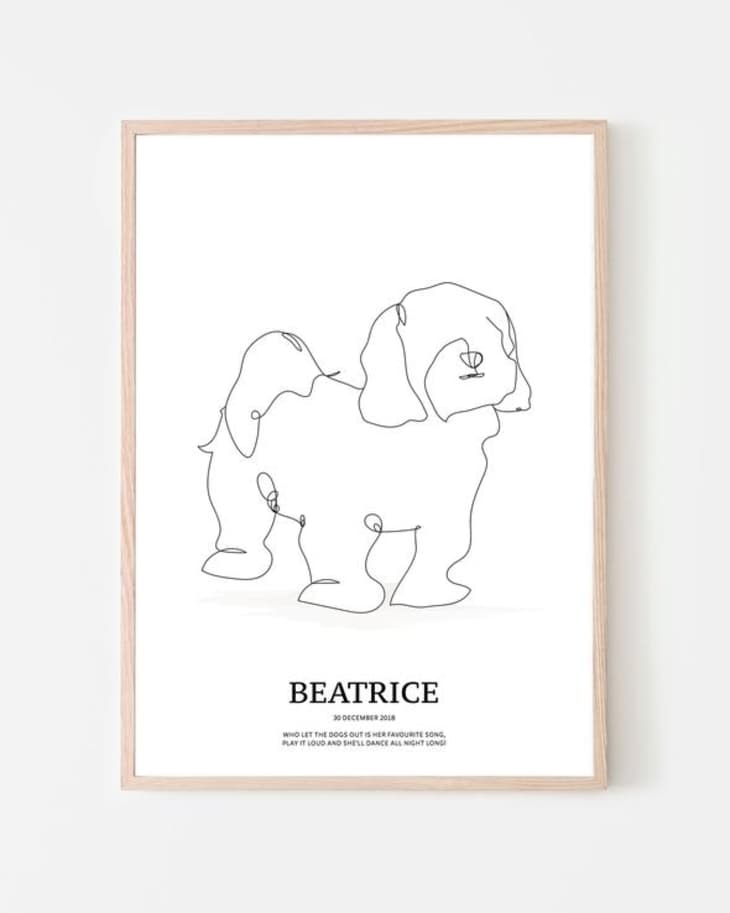 According to Design Milk, Swedish couple Josefine Wikström Nilsson and William von Heidenstam started the print company in 2019. The designs are all hand-drawn by Nilsson in the style of simple line drawings. Right now, you can choose from 14 cat breeds and more than 90 dog breeds. There’s also a bunny option.