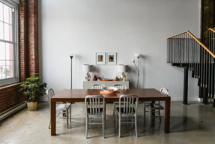 Vijay Nathan—Product Manager for Apartment Therapy Media—and his wife Anita moved into their rental loft in Philadelphia last year, bringing along with them furniture pieces from previous homes that no longer felt quite right. Some things they loved, others they knew were now placeholders and in need of replacement. “We came to our marriage with furniture that had served us well when we lived apart, though most of it lacked personality and longevity,” says Vijay. “In our new place, the open floor plan posed a bit of a challenge as the furnishings we brought into this apartment were not enough to fill the space in a meaningful way and didn’t have a cohesive style.”
