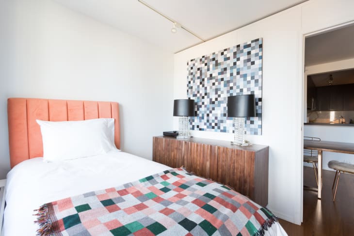 Your bedroom is where you go to unwind and sleep, so it’s important that it doesn’t feel like the walls are caving in around you. Which can be a little tricky if you happen to have a small apartment with a teeny-tiny bedroom. While we can’t help you increase your square footage, the good news is we can help you fake a larger visible area through the magic of paint. We asked designers to share what their favorite colors and tricks are to make a small space feel more open.