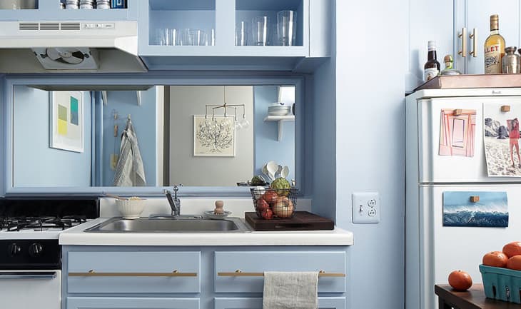 In fact, paint everything in your kitchen the same color: the cabinets, the walls, shelves, the island —and even the ceiling if you want to really commit. We’ve documented before how painting furniture the same color as the wall can make a space look bigger and also give cabinetry and shelves a built-in look. As it turns out, this is particularly true in the kitchen.