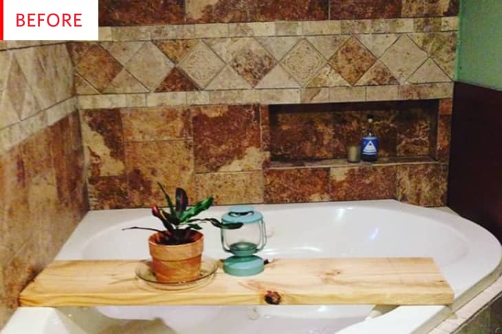 While this bathroom would have been the absolute height of luxury and style a few short years ago—and it’s still extremely nice—it was basically the opposite of its owner’s style. After a creative, approachable DIY, this went from earth-toned bath to brightly colored… ball pit?