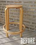 I bought these bar stools at Target about ten years ago, when my husband and I were renting an apartment with a little breakfast counter. Since then, I’ve used them in my studio, where they’ve gotten beat up and paint splashed. I moved out of my studio but I’m still not quite ready to part with the stools so I decided to give them new life…It was immediately evident when I brought the stools into our little apartment that I would need to cut them down.