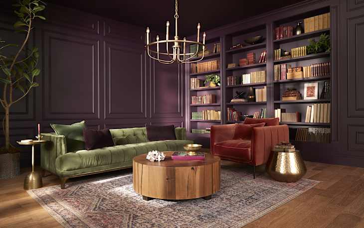 If you’re not ready to paint the walls or full-on color-drenching, consider giving a piece of furniture (or a door, or a window frame) some dark purple love, like DIYer Randi Randi Froug did with these once-brown and dated bookshelves.