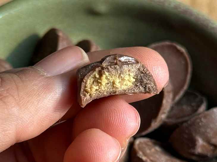 The chocolate-to-peanut butter ratio is pretty 1:1 (which I enjoyed, but others, like Mara, our Director of Shopping and Groceries, wished there was a bit more peanut butter in the equation) and the milk chocolate is as creamy and sweet as ever. The peanut butter gives it that classic nutty taste that makes any Reese’s just so good. The bag was nearly finished a few hours after opening!