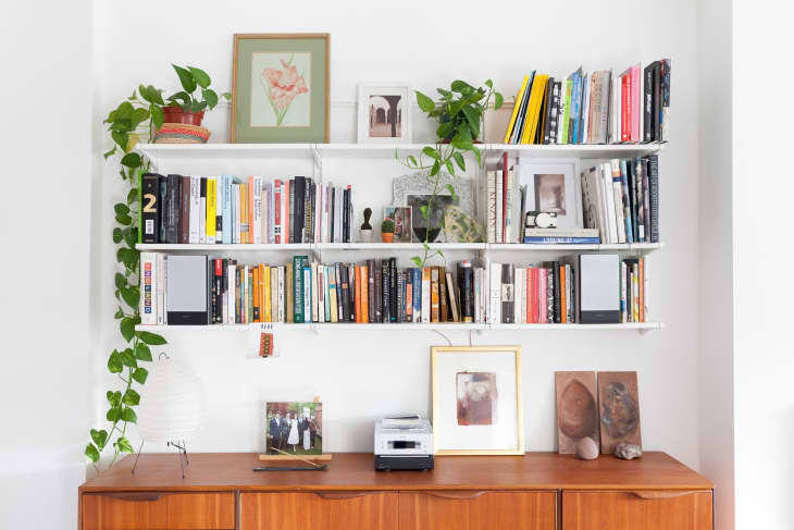 Your surface can be the top of a console table, one shelf on the wall, or even an entire bookcase, if you’d like. But make sure you choose something finite, and make sure it’s not an overwhelming task: “the entire bookcase” is great if you mean a small IKEA piece, but not the built-ins in your 18-foot home library.