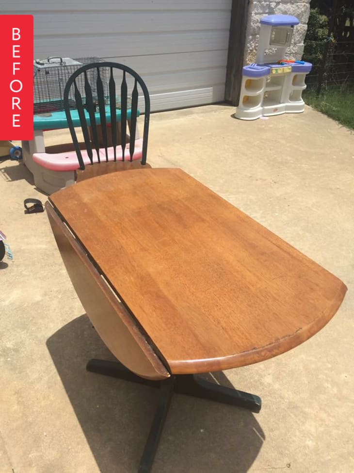 Here we have a perfectly ordinary drop leaf dining table. You’ve seen its ilk at thrift stores, and maybe one is in your home right now. This particular one, however, has been totally transformed by a talented Game of Thrones fan into something you might see in The Red Keep.