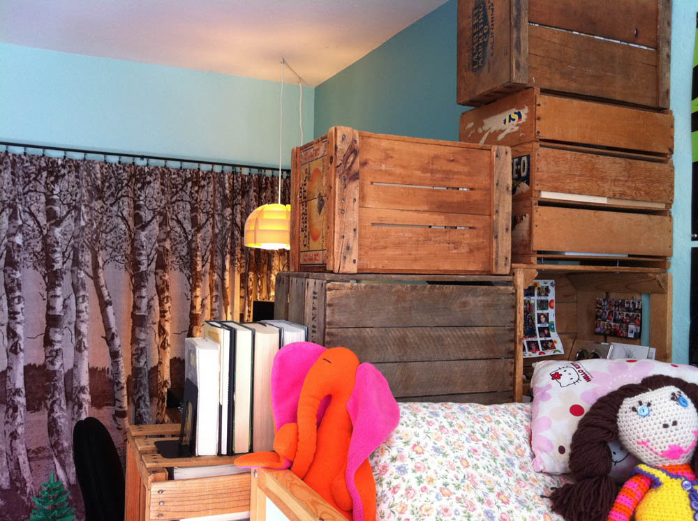 I knew exactly what I wanted when I went looking for the crates to make the separation between the office and the bedroom. I’m not sure what I would’ve done if I wouldn’t have found them. Maybe a curtain? Pretty much everything besides the crate divider was already here and waiting for a home.