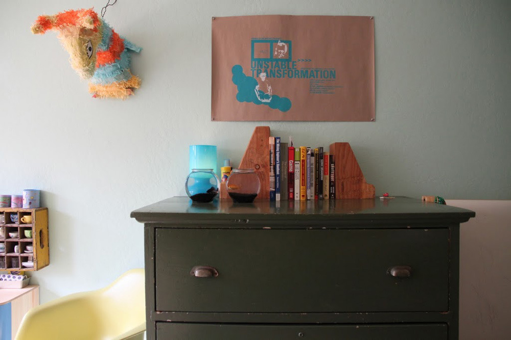 We’re renters, I’m not sure how much further we could take it. That’s a tough one. I do collect wall banners and probably could find an even more appropriate one for Stella’s room at Better Wall. And right down the street is a great vintage/mid-century furniture place which if I had carte blanche I’d just take it all home and start over.