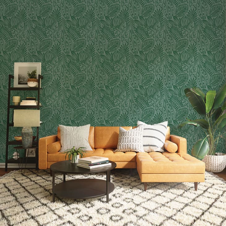 On the other hand, Matthews’ twin sister, fellow co-founder, and Tempaper CEO Julia Au says her favorite is Block Print Leaves. “The palm stripes bring a rhythm and movement to walls that’s striking in the black jade colorway,” says Au of the pattern pictured here above. “Layered with plants and textures, it will create the perfect bohemian setting in living rooms, bedrooms, and beyond.”