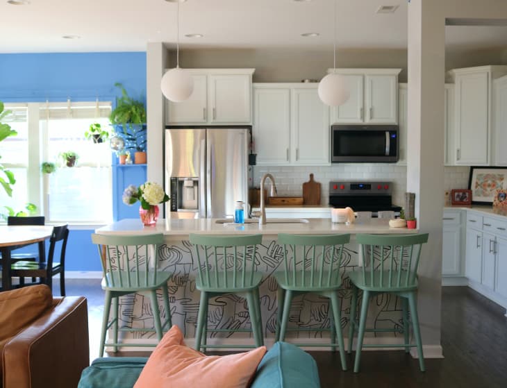 Depending on the size of the home, a kitchen island can be one of, if not the biggest, features in a kitchen. Wallpapering it — or trying a cool copy-cat project like Bobbi’s —is a great way to draw the eye to a spot that could easily be overlooked. Whether you decide to go with original wallpaper from one of the many cool companies out there creating renter-friendly prints or you recreate your own with paint, your kitchen island could definitely be on your list of places to paper.