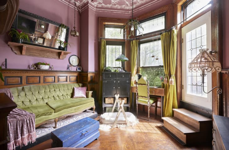 If you, like me, are obsessed with the gorgeous antiques and moody aesthetic of the Van Rijn household, I recommend experimenting with bold colors and rich, warm wood tones. You don’t necessarily need to go so dark — the living room above, shot in a classic Brooklyn brownstone, shows how you can indeed pair wood pieces and detailing with complementary jewel tones, without making the room feel too dark and dated.