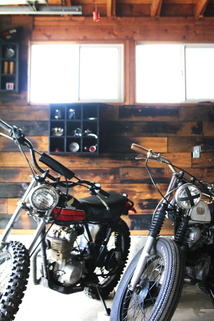 The reclaimed wood wall has been popular for a while now, and I’ve been wanting to get the look in my garage. I love the earthy hues and honest feel of reclaimed wood, but after realizing the time it would take to scour Craigslist and salvage yards for enough material, I decided to forego that nightmare and instead pursue a DIY approach using a wood-charring method called Shou Sugi Ban.