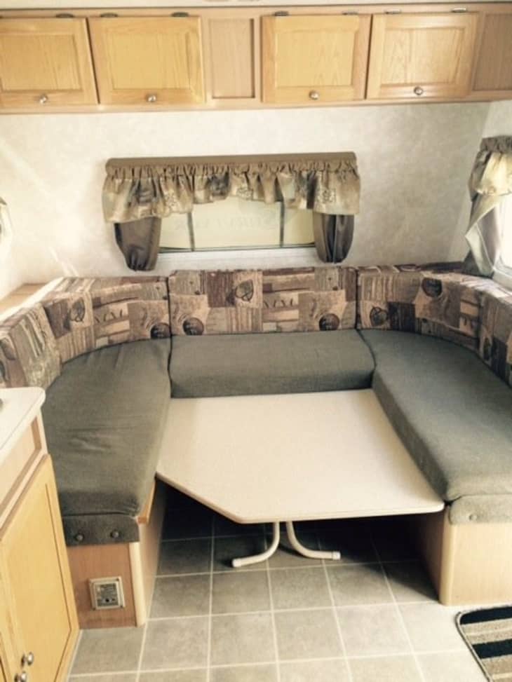 When we got the camper, it was a typical dated, cookie cutter camper circa 2005, complete with dated upholstery, decor, and paneling. Our mission was to turn this sad, little, prefab camper into a full blown glamper of our dreams. It had good bones. That was the most important thing to us.