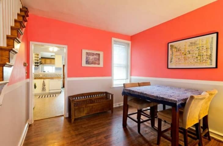 Last year my boyfriend (now fiance 🙂 and I bought our first house (a rowhome in the Fishtown neighborhood of Philadelphia) and we’ve spent the last few months transforming the first floor, mainly the kitchen (check it out here!), and also building this breakfast nook in the main living area.
