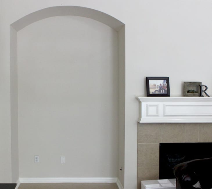 When we moved into our house there was one thing about our living room that bugged us. It was the inset in the wall next to the fireplace. It was intended for the TV but we knew how we wanted the room to “flow” and found it awkward to have the TV off center and next to the fireplace. So we set up the living room how we wanted it with the TV on the long wall and left that space empty. When Christmas came it became the perfect spot to put our Christmas tree but we were perplexed with what to do with the space the other eleven months of the year.