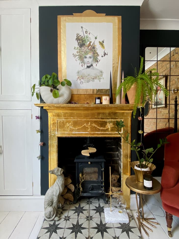 If you’re looking for glitz and glamour, it’s hard to beat the look of gold leaf on frames, on vases, and even—as shown in gold leaf artist Lara Bezzina’s home—on architectural features like fireplaces.