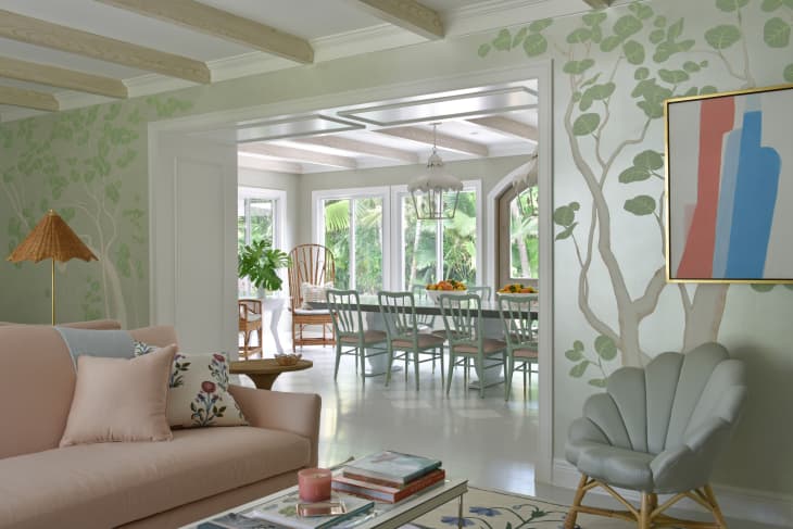 A little pale pink paint makes a huge difference. Case in point: The blush-painted wood stairs inside this Palm Beach Home, also designed by Caroline Rafferty. The color livens up the narrow staircase without overpowering the rest of the eclectic decor in the space.