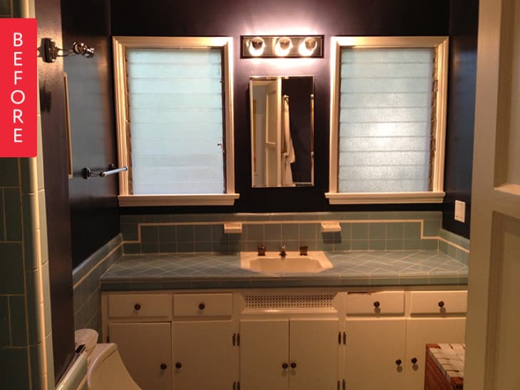When Alyssa and her husband moved in to their Echo Park home seven years ago, they were happy to see a lot of the original details from the 1940s bungalow intact, like this blue tile in the bathroom. Though the tile was charming, the rest of the bathroom was dark and gloomy. Alyssa was able to give the space a whole new modern look with a just few small changes—and keep the charming vintage tile!