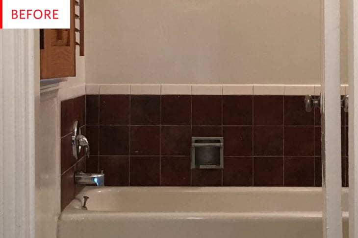 Before and After: An Ingenious Fix for Ugly Rental Bathroom Tiles