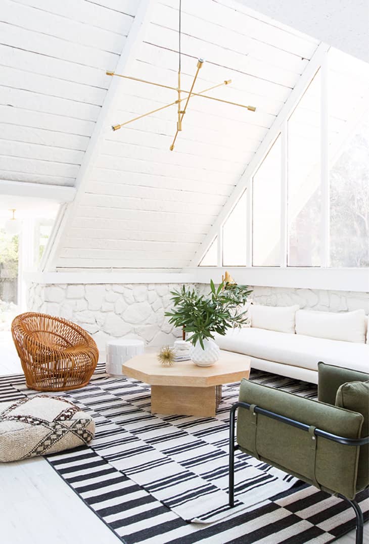 But she’s not just a one-trick pony. In addition to designing spaces, she also works as an art director, product designer and shares a ton of her own original content on her blog, Stories (oh, and her brand spanking new wallpaper line exclusively with Lulu & Georgia is worth a peek). Busy lady! And by the way, I see a lot of house porn in my job, and even I gasped when I stumbled upon the photo of her Palm Springs A-frame living room makeover. It’s kind of the perfect space.