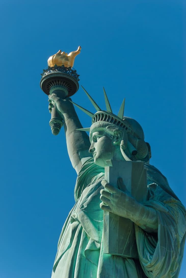 Lady Liberty’s thin copper skin has changed quite a bit since her birthday in 1886, growing a gorgeous layer of verdigris patina, helped along by the salty ocean air she’s exposed to day after day.