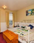 Before & After: A Dark Master Bedroom Brightens UpAmanda writes: “When we first bought the house, I painted our bedroom this deep, dark teal. I had rented so long, I just wanted to cover every surface with paint and wallpaper! While a pretty color, it made our room very depressing, dark, and cave-like.” When our contractor was taking out the walls and ceilings, we realized we had an awesome pitch to the ceiling. We decided to keep it lofty, and add a faux beam. This room is now so light and airy.
